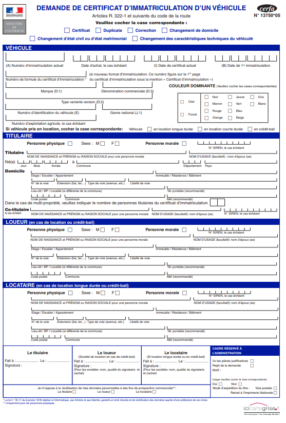 1ère immat. d’un véhicule ancien jamais immatriculé